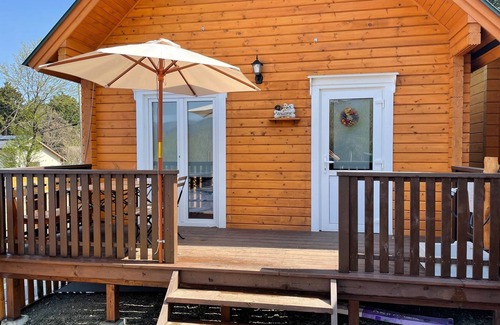 We also rent a BBQ set stove only for 2000 yen or a complete set including charcoal for 4000 yen / This is a large and stylish log house that can accommodate up to 8 people Of course you can also bring your dog with you