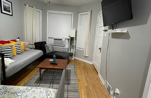 LOGAN SQUARE: Chic, Comfy 1st Floor 2 BDRM APT! Parking Incld! is located in Avondale. LOGAN SQUARE: Chic, Comfy 1st Floor 2 BDRM APT! Parking Incld! provides accommodation, featuring Bedding/Linens, Fireplace/Heating, Barbecue/Outdoor Cooking, among other amenities. This House features Bedding/Linens, Fireplace/Heating, Barbecue/Outdoor Cooking, to make your stay a comfortable one.