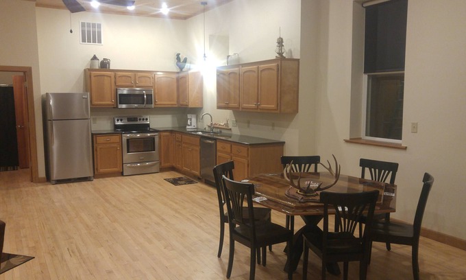 Sleeps up to 11 people with comfort or more if desired. Located within walking distance for food or refreshments. Large great room, two bathrooms with showers, washer/dryer for doing your laundry after a day on the river or exploring the bluffs of the Driftless Area. Super Host ratings!