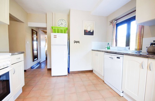 From the garden you enter the kitchen which is fully equipped with everything you'd need on holiday from a 4-ring cooker, microwave, dishwasher, fridge/freezer, blender, through to champagne flutes.