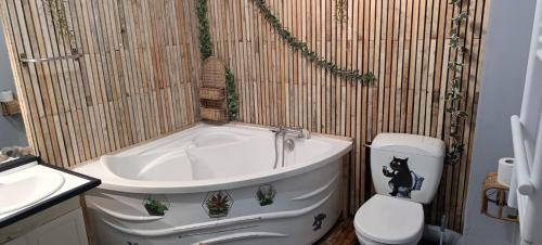 Logement rustique pont de menat les gorges de la Sioule is located in Menat, just 25 miles from Athanor Centre de Congrès and 29 miles from Vichy Racecourse. The apartment features both Wifi and private parking free of charge. Palais des Congrès Opéra Vichy is 30 miles from the apartment and Célestins Spring is 31 miles away. The spacious apartment is composed of 2 bedrooms, a living room, a fully equipped kitchen, and 1 bathroom. A flat-screen TV is featured. The accommodation is non-smoking. Vulcania is 31 miles from Logement rustique pont de menat les gorges de la Sioule, while Vichy Train Station is 31 miles away. Clermont-Ferrand Auvergne Airport is 32 miles from the property.