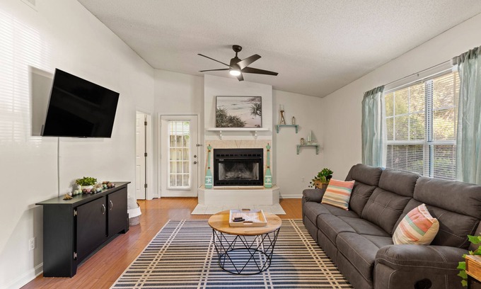 This newly renovated, 3 bedroom, 2 bath home is centrally located to shopping and restaurants, with short commutes to local hospitals and FLETC, yet it's nestled in a picturesque, quiet neighborhood. It is pet-friendly with a fully-fenced yard. There is a dedicated workspace with a computer desk and chair, which is perfect if you work from home.