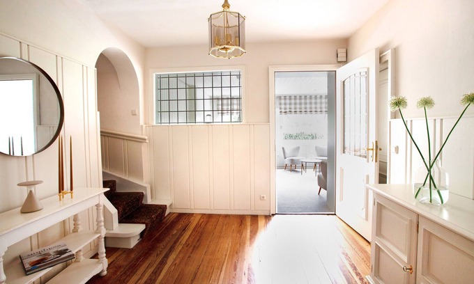 Each room has access to the covered balcony. The bright, spacious apartment is equipped with beech parquet and is therefore allergy-friendly. The heart of the apartment is the tasteful living-dining room. Hallway and bedroom have fitted wardrobes. A children's chair (Tripp Trapp) and a cot can be used if necessary. The little ones can let off steam after long excursions in the large garden. Swing, trampoline and table football are available.