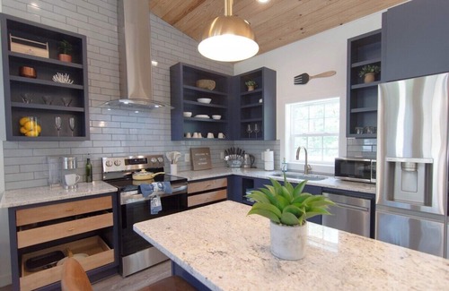 Our Getaway offers an open concept living area with modern kitchen with all you will need to enjoy your time away. Lola's has two bedrooms and one elegant bath. Great view from deck relaxing in the hot tub or at our private fire pit!