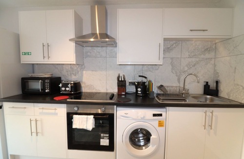 Enjoy a stylish experience at this centrally-located place. Living room is nicely furnished with comfy Sofa and Armchair with a large flat screen smart TV for entertainment. The private balcony with furniture allows for outdoor relaxation. Both Bedrooms have very comfortable twin beds with 5K pocket springs which can be linked into Super-king beds. Kitchen has all necessary appliances and supplies. Apartment is 4 minutes walk from the Train Station and 5 minutes walk to Restaurant, Cafe, Stores etc