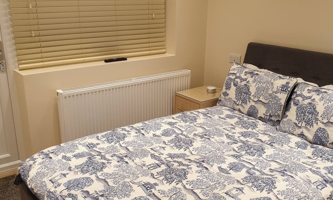 A luxurious & beautifully presented serviced apartment - modern, high-end, with a Double bed for 2 guests with Smart TV, Netflix, Fibre Optic Hi Speed WiFi, CCTV, keyless self check-in, Garden access, FREE parking.