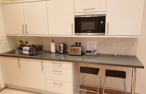 A luxurious studio suite - a stylish, beautifully presented serviced apartment, modern, high-end, Double sized bed for up to 2 guests, Smart TV, Netflix, Fibre Optic Hi Speed WiFi, CCTV, keyless self check-in & FREE PARKING. You will have your own private entrance and no facilities or spaces are shared, your apartment is private and for your sole use only.