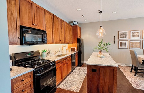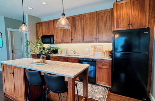 This gorgeous upstairs condo has everything you need for a fun and relaxing stay in historic LeClaire. After you park your vehicle in the Lone Star's heated private garage, the adventure can begin! The Lone Star Loft offers an open floor plan with a fully stocked kitchen, dining room and living room all overlooking the mighty Mississippi River. The gas fireplace and comfy sectional gives you and your guests a wonderful gathering space. Maybe you prefer to sit out on the full length deck with both dining and sofa seating. To add to the experience there are railroad tracks behind the condo with a few trains daily.
