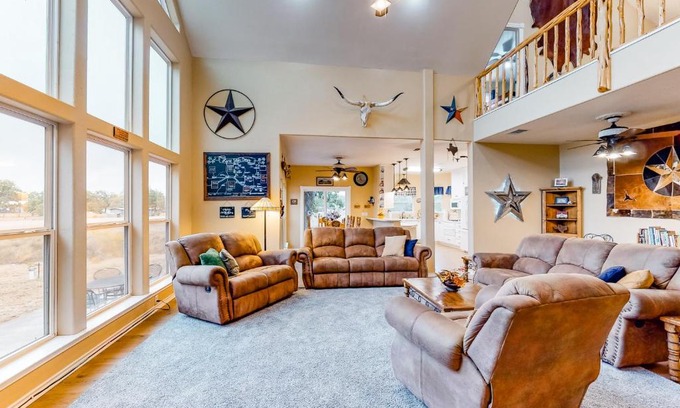 Best-rates for the Lone Star Oasis starts from $426 per night with includes Barbecue/Outdoor Cooking, Child Friendly, Balcony/Terrace, Sports/Activities, Fireplace/Heating, Restaurant, Laundry, Air Conditioner, Pet Friendly, Security/Safety, Guest Services with all other amenities. Perfect for Weddings is committed to ensuring every guest experiences a comfortable and extraordinary stay, whether planning a romantic getaway, a honeymoon, a pet-friendly stay, or celebrating with the entire wedding party.