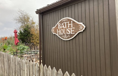 Adorable, Clean, Rustic, Peaceful, Private cabin nestled in a private area of our Old West style Saloon ; cabin offers gardens, newer vented, composting toilet (as seen in bathroom pictures), soaking claw foot bath tub with very small hot water heater. No internet at this cabin! Local tv channels only. Wifi should work on your phone. Best suited for one guest due to small size of cabin. Two guests max! NO pets!