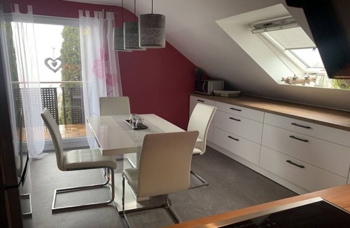 Four-star holiday apartment in the Franconian Forest - Fichtel Mountains www.frankenwald-ferien.de Newly renovated holiday apartment in 2022! Our beautiful holiday apartment, rated 4 stars and boasting a beautiful view, is located between the Franconian Forest and the Fichtel Mountains. The loggia faces south/west and is equipped with balcony furniture, a parasol, and sun loungers. A barbecue grill and a sunbathing lawn are available in the garden. Amenities: Blender, kettle, coffee maker, toaster, microwave, dishwasher, induction stove, extractor hood, fridge-freezer, Dish towels, aluminum foil, dish soap, kitchen roll, tablets, and toilet paper for the first few days. Cleaning supplies. Bathroom mats and bed linens are provided; you don't need to bring your own.