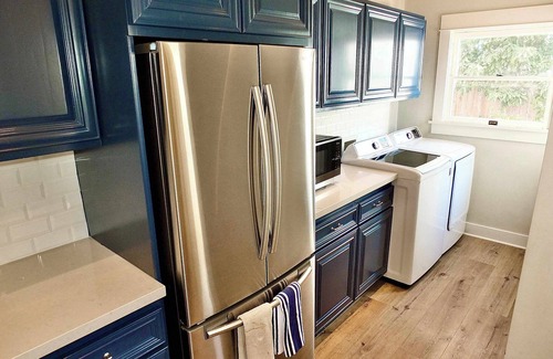 Here at Long Beach Breeze, all the hottest destinations and attractions of this coastal oasis are at your fingertips, with luxurious accommodations to match. Surrounded by lush native greenery, the home stands as a secluded retreat for families and friends alike, your private home base between unlimited adventures. Set out on foot for all your shopping and dining needs, just a short 10-minute walk from East Anaheim Street lined with options for every taste. With a short drive you’ll be at the glittering sandy shores this area is well-known for, soaking up the plentiful California sunshine and the soothing sounds of the water lapping the shore. When you’re ready to wind down for the evening, head back to the home and sip on a refreshing cocktail on the back patio, enjoying those last few moments of fresh air before heading indoors.