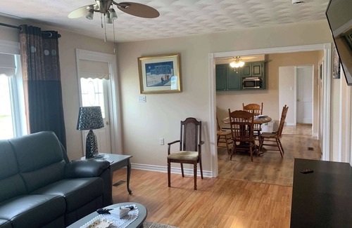 Experience the serenity of coastal living in this cozy pet-friendly 2-bedroom bungalow located in Crow Head, Twillingate. This home offers a comfortable retreat with a dine-in kitchen, a comfortable living area with cable TV, and two bedrooms, each featuring a queen bed. Unwind on the side deck (accessible from the exterior of the home) with BBQ facilities while enjoying the stunning views of the North Atlantic. Perfect for families and those seeking a peaceful getaway near the ocean.
