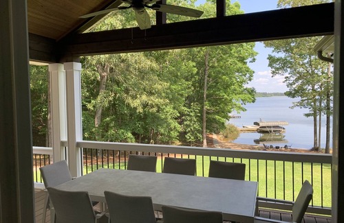 Absolutely fantastic lake home with big water views. Deep water dock perfect for swimming, fishing and boating. Sandy beach with shallow water great for children. Fully renovated home with two separate living areas. Upstairs living has large open kitchen with views to lake, smart TV and plenty of space to gather. Four large bedrooms and three baths without any steps. On the stepless main level there are two master suites with king size beds and adjoining baths. Queen bedroom with bunk beds and an additional bedroom with queen size bed. Large deck and covered porch with beautiful lake views. Nothing better than mornings on the porch! On the terrace level there is another king bedroom and private bath. Game room with Smart TV, pool table and lake views. Three total en-suite bedrooms all with king beds. Large level yard for backyard games and an outdoor gas grill for cooking out. Concrete walkway to lakeside dock with umbrella, table and chairs. Lakeside fire pit for evening fun. 4 kayaks and one standup paddleboard. House is located at the peaceful south end of the lake.