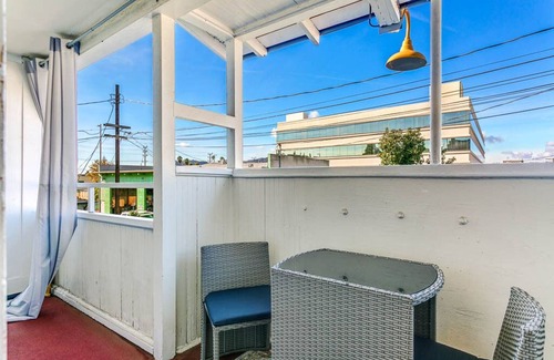 Gorgeous top floor pied-a-terre studio w/ pull down Murphy bed! Original hardwood floors. 9 ft ceilings. Brand new renovation including designer kitchen w stainless appliances. Central AC and heat. New shower. Laundry in unit. Small balcony. Free WiFi, 42" flat screen TV w/ DishNetwork. Desert-scaped courtyard w/ lounge furnishings. Free off-street parking.
