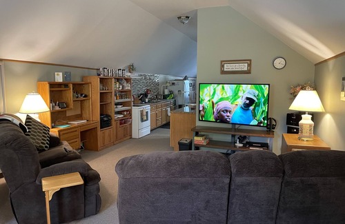 Our home away from home is now open for long term rental. Second story fully furnished apartment with king beds, linens, towels, full kitchen, includes all utilities, all appliances, dishes, and cookware. Off street parking for two cars, plus private entrance in a safe and quiet neighborhood. We do not allow smoking in the apartment, but provide smoking area on patio behind the building. Two desks, office setup, large screen TV with high speed WiFi, Dish TV with ROKU, and comfortable living room as well as access to washer and dryer on the first floor. Acorn chair lift available for those needing assistance to reach second floor. Again, covers all utilities (gas, water, electric, cable, Dish TV). If you're transitioning to Nashville, or assigned to work in the Mt Juliet or Nashville area, this is the place for you. 20 minutes to BNA (airport) and another 10 to downtown Nashville, TN.