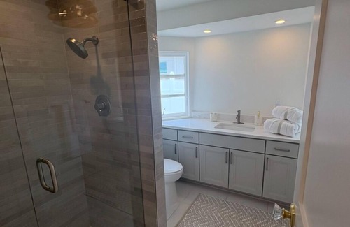 - Modern Bayfront Retreat with boat dock and short walk to Beach