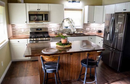 Unwind in this spacious retreat featuring a king-size bed, a fully equipped kitchen, and a cozy great room. Enjoy a private porch and laundry room for longer stays. Sleeps 2.