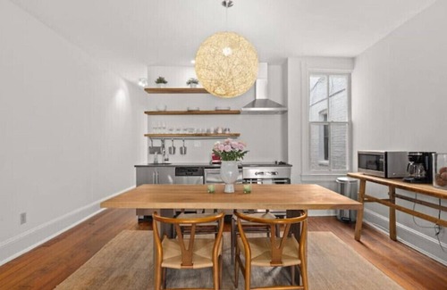 Professionally decorated, in one of the most sought after neighborhoods in DC. Easy access to everything, on a very quiet street in Georgetown. This street level unit is only used for corporate rental or short term stays. Hardwood floors, full service kitchen with dishwasher, cooktop and full size oven, workable wood burning fireplace are just a few of the features of this classy mid century style unit. Should this place not be available, the upper unit of this two story house is also on airbnb.