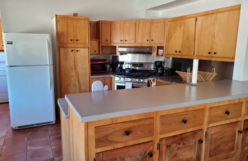 The DiPeso House is 3,000 sq ft and was constructed in the late 1950s but has all the modern conveniences. It is the ideal setting for quiet getaways, family gatherings, retreats and more. This four bedroom, 3 bath house features a large living room with fireplace, a library, dining room, wonderful kitchen (stocked with dishes, cooking utensils, coffee maker, toaster, microwave and more), laundry room, family room, master bedroom with a king size bed and private bath, bedroom with 2 twin beds sharing a bath with a bedroom with a queen size bed. On the other side of the house is yet another bedroom with two twin beds and private bath. All bedrooms come complete with all the linens and bathrooms with towels and accessories. Enjoy the outdoor spaces with chairs on the porch while watching the local wildlife and taking in the magnificent views that surround you.