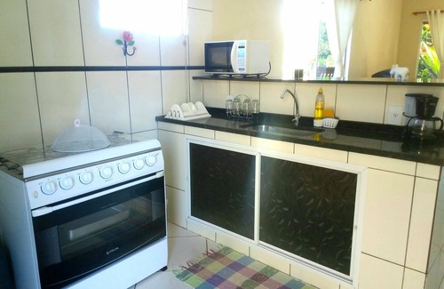 2 bedroom house with ceiling fans, 1 bathroom, fully equipped kitchen, living and dining room, balcony with hammocks, table and chairs; Pay TV, Wi-Fi, backyard with parking space for 3 cars. Super quiet and familiar place.