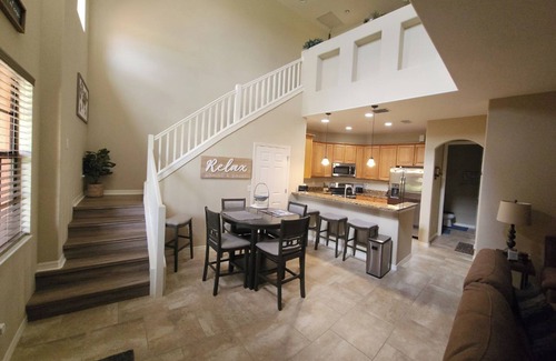 This property was built in 2016 total remodel October 2022. The décor is stunning. Waterfront property. walks from the pool, ice cream parlor, movie theater, Club House, Fitness center. Two Bedroom 2.5 bathrooms. Balcony over looking the entire downstairs. The Paseo community is outstanding with it's resort style infinity pool, tiki bar, bistro, movie theater, gym, spa. You will have access to all pool items. You will enjoy our waterfront view with a stunning sunset. Looking to feel like you are living a Paradise life? The grounds are meticulous. Our townhouse can accommodate 6 guests - 4 in mater bedroom and 2 in second bedroom. You will fall in love with Paseo and will return year after year. We will make your stay perfect. I will take care of you as if you were my family.