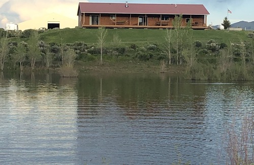 Watch the Sunrise or Set on are XL wood backporch facing the Lake, while the kids are having fun in the backyard next to the camp fire or playing horse shoes. Or your laying in the hammock with a glass of wine as the fresh Utah summer breeze hits your face, all the noise from city is non-existent. Take a short walk to the edge of the Reservoir. Cast your line try to reel in a monster. We have fishing poles on the property plus Kayaks w/paddles.