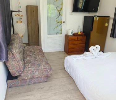 This 4 Bedrooms Resort is suitable for tourists and travelers. It has several amenities that would guarantee your comfort. These amenities include: Air Conditioner, Pet Friendly, Wellness Facilities, and several others. This is a good star rated property and has over 1 review with the average score of 10 . Coming to Ban Sanam and needing a place to stay? Be it for work or for leisure, consider staying at this Resort for your next visit, you will surely love it.