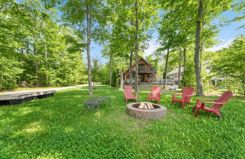 Welcome to your perfect getaway retreat! This spacious and beautifully appointed lodge offers comfort, charm, and everything you need for a memorable stay. Outside, enjoy the inviting firepit area, perfect for evening gatherings under the stars. The deck features a dining table ideal for outdoor meals, & a BBQ ! While the private balcony off the master bedroom offers a bistro set and stunning views of the surrounding property. We have a canoe, Kayak and stand up Paddle board to enjoy the water activities as well as plenty of lawn games!