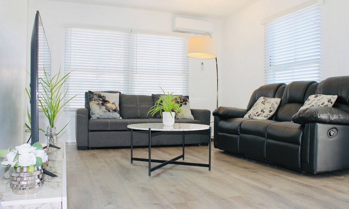 - Modern Cozy Retreat Stylish Stay with Patio & Parking