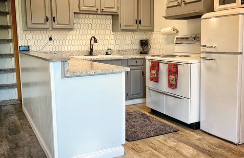 The house is well stocked with everything you will need from linens and blankets, to pots and pans to a Keurig coffee maker. We also have a great library selection, DVDs, quite a few board games and puzzles for your entertainment. There is a large smart TV for movie nights and of course wifi. Please be aware, the two queen beds are located up a VERY steep set of stairs that some people may not be comfortable going up and down. However, there is a bunk bed and a very cozy couch located on the main floor.