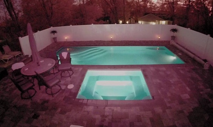 Newly built pool house with all the bells and whistles along with secluded (6 foot privacy fence) hot tub, pool, outdoor TV, and an outdoor kitchen. Has it’s own laundry room and full kitchen with dish washer. Smart TV, Dish Network, and much more. Private pool but owners live on property and may use pool during rentals. Near to Lost Lands concert venue!