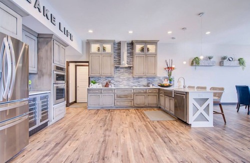 The Dock: Take full advantage of the private dock with additional slips. Slip size is 12x30 and there is one jet ski lift. The dock includes patio furniture, wet bar (with full fridge and stereo), fire pit, kayaks, Lilly pad, noodles and stand up paddle boards. There is also a full size fridge and Stereo system. Make sure to bring your boat or rent one when you stay here!