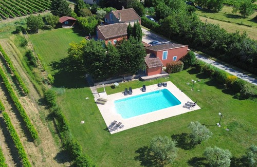 There is an astoundingly beautiful view of the vineyards and the surrounding nature. In the large fenced garden with many trees, bushes and plants, there is a large common swimming pool (12x6m -160cm deep – heated – open from 01/05 till 30/09) and has a most relaxing sports activity: a petanque alley.