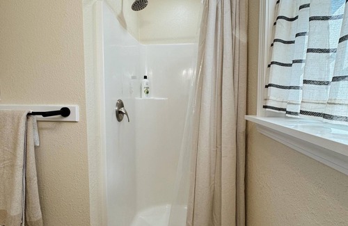 In the bedroom you will find a comfortable queen sized bed with a TV. The living room also boasts a smart TV and love seat. Frieda has a small dining area, the kitchenette has a microwave and mini fridge with freezer and a set of dishes, glasses and silverware. There is coffee maker with all the fixings for a great cup of coffee or tea. The bathroom has a full shower and hair dryer.