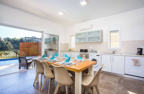 Our new 4bedroom Villa nestled in the serene valley of Koskinou village—a tranquil oasis perfect for a relaxing holiday. Each bedroom features its own en-suite bathroom, offering privacy and comfort for all guests, along with an additional shared guest toilet for added convenience.