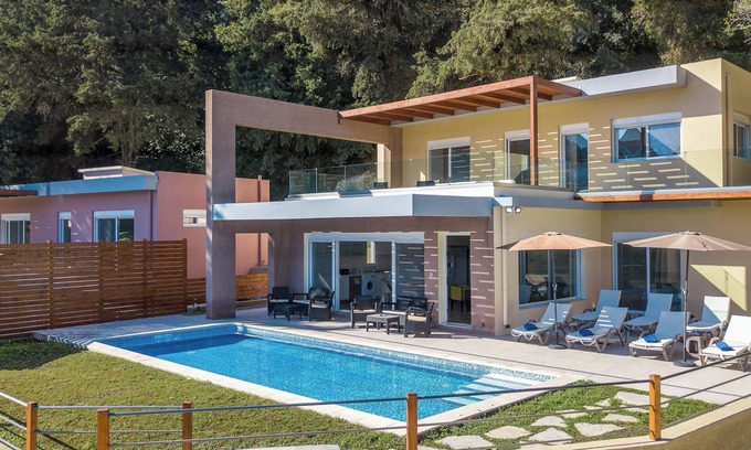 Best-rates for the Louloudi Hills Villa I. starts from $227 per night with includes Parking, Private Pool, Bedding/Linens, Pet Friendly, Balcony/Terrace, Security/Safety, Wellness Facilities, Barbecue/Outdoor Cooking, Internet, Kitchen, Child Friendly, Air Conditioner, Pool, Fireplace/Heating, Laundry with all other amenities. Perfect for Weddings is committed to ensuring every guest experiences a comfortable and extraordinary stay, whether planning a romantic getaway, a honeymoon, a pet-friendly stay, or celebrating with the entire wedding party.