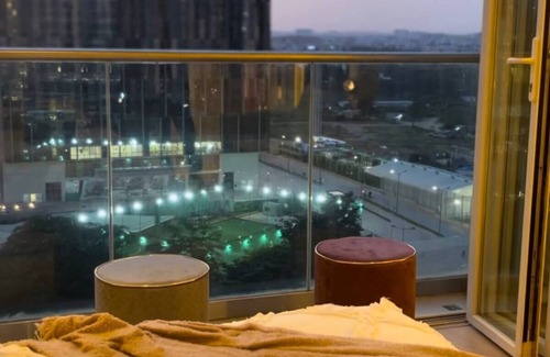 Luxury meets lifestyle in Bhartiya City. with prime views from dual balconies. easy mall access, and top-tier amenities. this elevated living space offers curated elegance and thoughtful comforts. indulge in the Leela Hotel restaurant, explore nearby attractions, and relax in the expansive interiors. experience sophistication and panoramic vistas - Lounge Fly awaits your arrival.