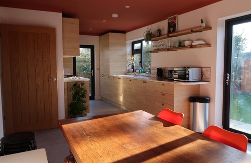The kitchen has tonnes of natural daylight pouring in, opening out onto a lovely, large sunny garden and patio area. The fully equipped kitchen has a dishwasher, microwave, oven, coffee machine plus plenty of cookware, glassware, crockery and cutlery so you can easily cook up a brunch or lunch for everybody. In addition to this we offer complimentary tea and coffee, salt and pepper - so please help yourself. The utility room includes a washing machine.