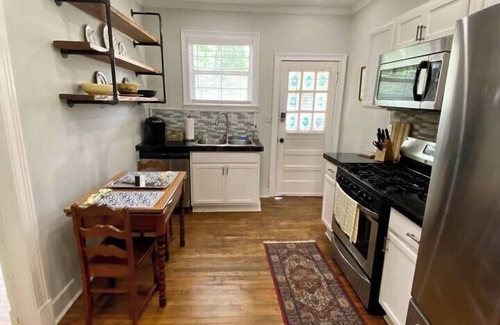 Built in 1925, this beautifully restored 1-bedroom apartment is nestled in the historic Belhaven neighborhood, just minutes from downtown Jackson and the vibrant Fondren arts district. This cozy retreat offers a perfect blend of vintage charm and modern amenities, making it an ideal stay for solo travelers, couples, or business guests.