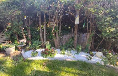 Out your back door you have access to the relaxing, albeit a bit wild, garden. The garden has a trampoline, only 2 years old, practically new, which desires use as my own children have outgrown it, as well as a climbing frame, both great for the little ones. There is another seating area with another fire pit, a garden house perfect for a yoga session or enjoying the fresh air, rain or shine! Depending on the season, there are apples, pears, cherries, raspberries, blackberries, gooseberries, and currants growing that you are welcome to enjoy.