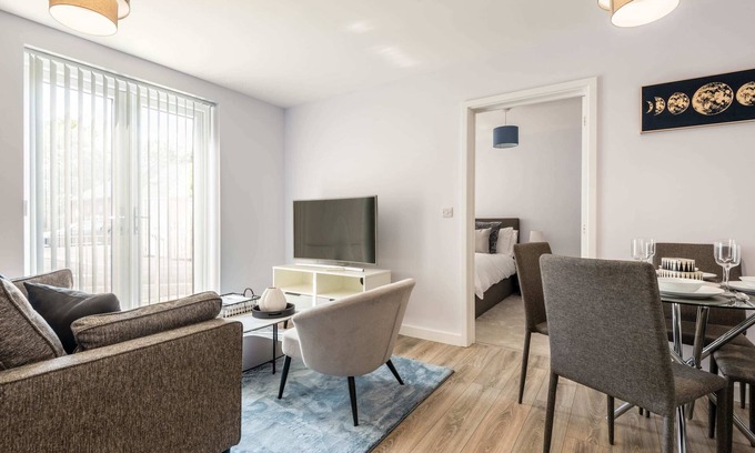 This spacious and bright 2 bedroom apartment is part of a modern development in York. The interior is beautifully finished, featuring modern furnishings and all the amenities required for a comfortable stay in the city. There's a modern fully equipped kitchen, 2 comfortable double bedrooms, a modern bathroom and Wifi throughout - the perfect home away from home.