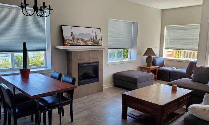Lovely 2-bedroom, 2-bathroom, top floor condo in downtown Ladysmith. You will be right in the heart of the action with cafes, restaurants, shopping and the Old Town Bakery within a few blocks of the unit. Transfer Beach Park and the ocean is a short walk away. As my unit is top floor, it is very quiet and relaxing. If you leave the windows open you will hear some traffic noise but other than that is very quiet. This is not a party place. The best parts about my place are the location, the views, and the atmosphere.