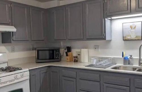The stylish dining room is ready for you to enjoy a meal with family and friends. Both bedrooms feature Queen Size beds, ample closets and 40” Smart TVs. Kitchen features every cooking tool you should need - refrigerator, gas stove, microwave, Keurig coffee maker, toaster, pots/pans. Bathroom has a hair dryer, shampoo & body-wash. Linen closet is stock with extra towels to ensure you always have enough!