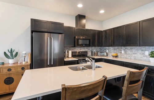 Your Bend adventure begins at this cool 2-bedroom townhome. With 2 king beds and 2.5 bathrooms equipped with all the essentials, this awesome property offers a peaceful retreat for guests. Reverse living, fully stocked home, single car garage, EV charging & super fast wifi in a quiet and safe NW Bend community near the Deschutes River. Enjoy the convenience of AC, washer/dryer, WiFi, seasonal pool, year round clubhouse, private peloton use, and even a fitness room. Plus, the additional office space with twin trundle provides extra comfort. We hope you enjoy what our place and Bend has to offer.