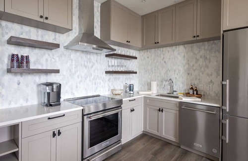 This stunning loft features everything you need for a perfect stay. Enjoy the comfort of smart TVs in every room, ensuring entertainment is never far away. The en-suite bathrooms provide private sanctuaries for relaxation, while the fully equipped kitchen offers the freedom to prepare meals for intimate gatherings. You'll also have access to building amenities such as a fitness center, a Sky Lounge patio for sunset views, and a ground floor art gallery to inspire creativity and conversation. Thoughtful touches like complimentary WiFi, eco-friendly cleaning services by a local business, and discounts for wedding parties further enhance your experience.