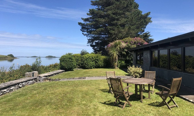 Beautiful lake shore bungalow, on a private peninsula with its own quiet access only road. The house is an archiect designed mid century modern house built in 1964 and recently lovingly restored and still in the same family. Five minute drive from the town of Oughterard (Oughterard is on the N59 from Galway towards Clifden), 26 km from Galway city.