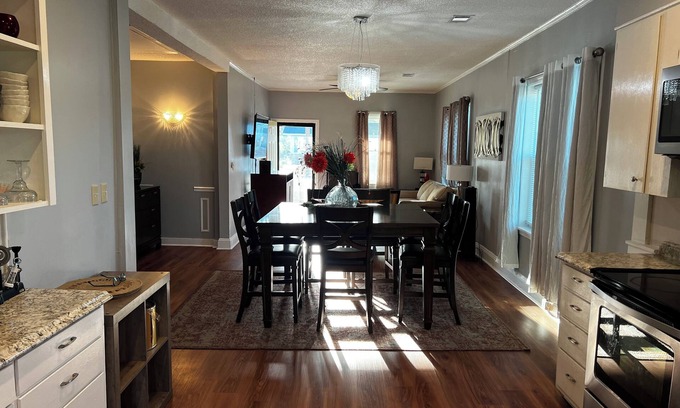 Your home away from home in Wadley with 3 bedrooms. This gorgeous house features 3 queen beds, a living room with a sofa bed, and 3 bathrooms. Fully equipped kitchen with cookware and dishes. The welcoming atmosphere and tremendous amenities like heating, AC, and an iron will make guests feel right at home. Enjoy relaxing on front porch and back patio. This is a house for family gatherings, business meetings or work crew. We'll be available to answer any questions while you stay at our place.
