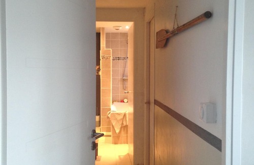 The first bedroom is a suite of 18 m2 which consists of a double bed 180x200 (in which can be added a cot for a baby;) and a bathroom with toilet and walk-in shower .