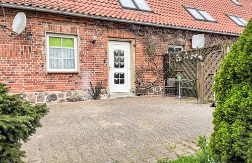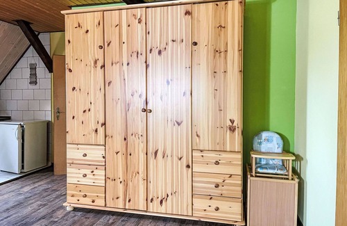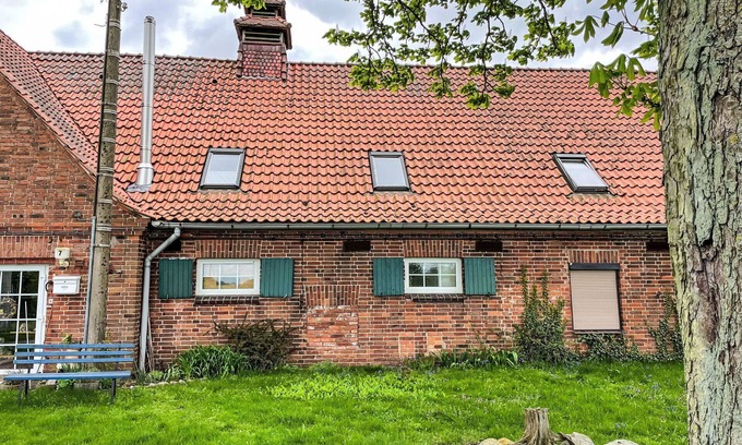 Kranich is a cozy, rustic semi-detached house that offers a charming vacation rental experience in Parchim, Germany. Built in 1939 and recently renovated in 2023, this two-story property is surrounded by a serene landscape of trees, meadows, and fields. It boasts a well-kept garden of 2,500 square meters, complete with a lawn for sunbathing, plants, an orchard, and a courtyard with a natural pond. You'll appreciate the convenience of having parking available at the house, as well as access to amenities like a yard, internet WiFi, and parking.